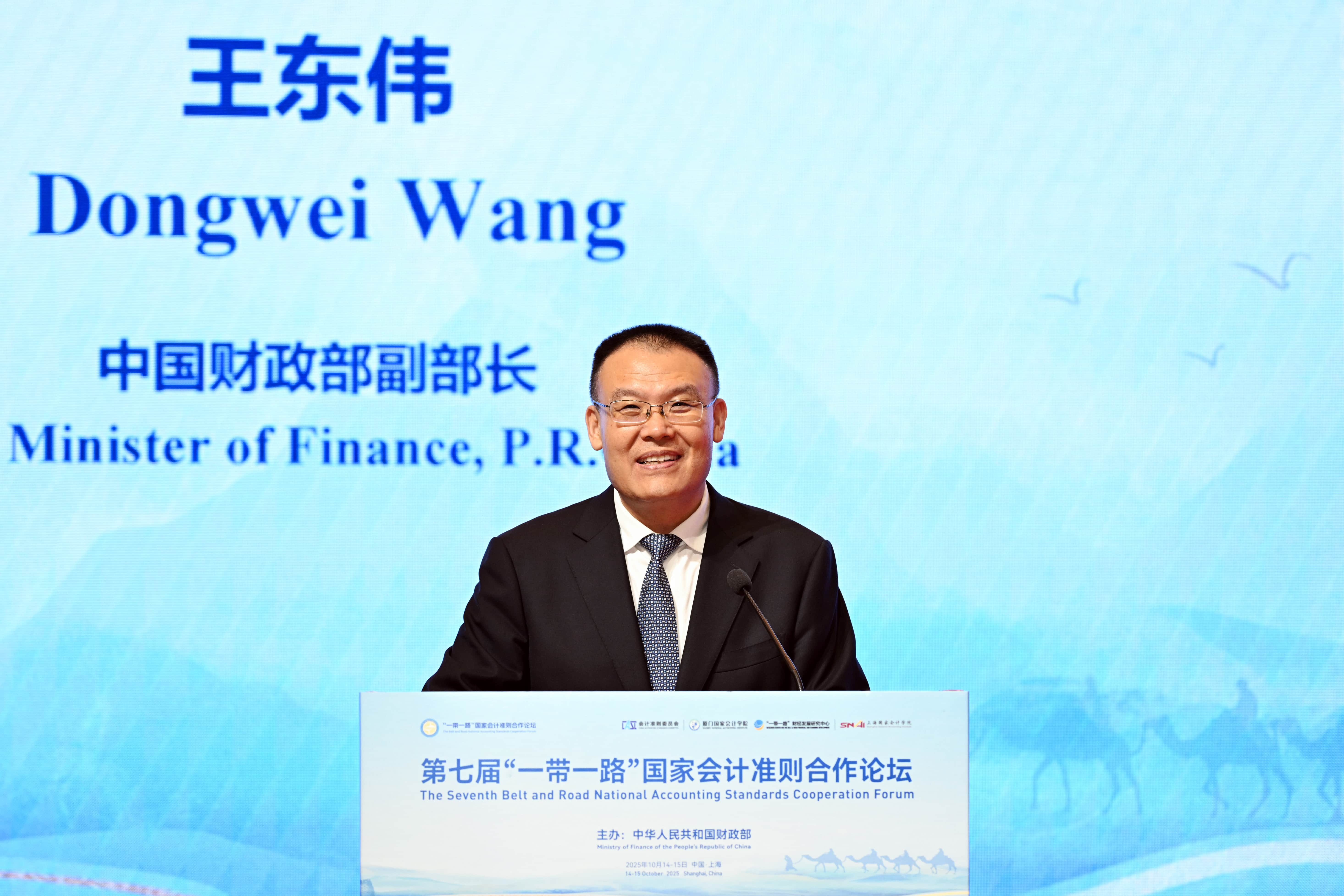 On Oct 14, 2025, Wang Dongwei, Vice Minister of Finance, attended the seventh “Belt and Road” National Accounting Standards Cooperation Forum held in Shanghai and delivered the opening speech.
